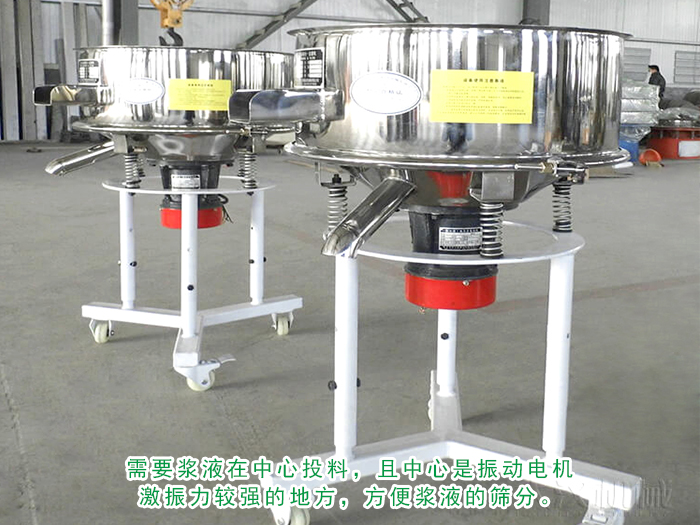 由于漿液具有一定的粘性,流動性非常不好,因此需要漿液在中心投料,且中心是振動電機(jī)激振力較強(qiáng)的地方,方便漿液的篩分。