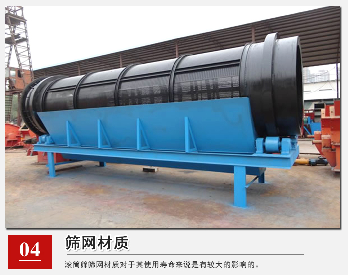 滾筒篩篩沙機的篩網尺寸對于,篩分能力有著直接的關聯。而對于不同的篩網尺寸其價格也會有相對的不同,例如:外篩直徑為Φ1500mm,長度為3000mm外形尺寸為3980×1790×1975mm篩網其價格就在13000以上。