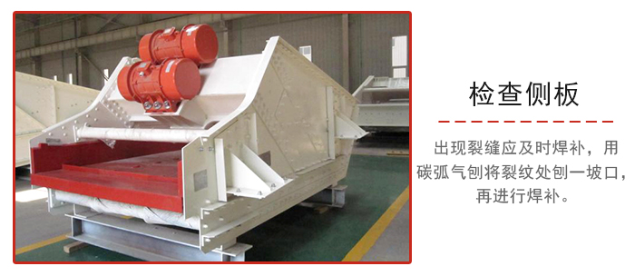 3、篩箱側板和橫梁如出現裂縫應及時焊補,可先在裂紋發展端鉆一小孔,然后用碳弧氣刨將裂紋處刨一坡口,再進行焊補,焊補是應嚴格按焊接工藝進行。
