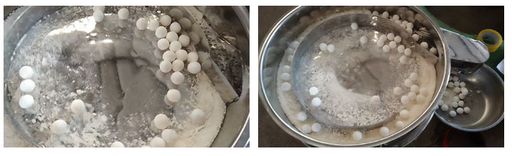適用物料:塊狀或不規則物料的表面裹粉,如:湯圓,餃子,花生,雞塊,魚塊等